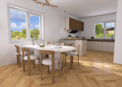 Predáme rozostavaný rodinný dom v kľudnej časti obce Svederník. Ide o rozostavaný jednopodlažný, nepodpivničený, samostatne stojaci dom s pozemkom o celkovej výmere 492 m2, ktorý bude dokončený do štádia holodom. Dom má obvodové múry z tvárnic ITONG so zateplením, má šikmú valbovú strechu, s betónovou krytinou. Dom má zastavanú plochu 144 m2 a úžitkovú plochu 114,6 m2 + terasa. Dispozične je dom usporiadaný do dennej a nočnej časti, dennú tvorí vstup, chodba, kuchyňa špajza a obývačka, z obývačky je vstup na strechou zakrytú terasu domu o výmere 21 m2. Nočnú časť dvorí rodičovská spálňa s vlastným šatníkom a 2 detské izby s chodbovým šatníkom samostatné WC a kúpeľňa s WC. Súčasťou domu bude elektrické kúrenie s možnosťou rekuperačného systému. Pre lepšiu predstavu sme našu prezentáciu doplnili vizualizáciami Interiéru domu. Dom bude do štádia holodom dokončený v októbri 2025. Dom je v katastri zapísaný ako rozostavaná stavba a je možné ho financovať cez hypotekárny úver. Aktuálne na konci augusta 2025 je ukončené vonkajšie zateplenie, fasáda domu je pred finálnou farebnou úpravou. Na streche sú osadené fotovoltaické panely s výkonom 6,8 kW, v dome sú dokončené rozvody a omietky a prebiehajú práce na dokončení podlahového kúrenia a podláh. Je prevedená príprava na osadenie vonkajších žalúzií. Ako bonus bude k domu k dispozícii za nezmenenú cenu priestranná murovaná garáž s elektrinou a vodovodnou prípojkou o zastavanej ploche 24 m2 v blízkosti domu, ktorá bude dokončená do konca roku 2025 a ďalšie vonkajšie parkovacie miesto. Ako ďaľší bonus je do domu privedená úžitková voda z veľkej studne s úpravňou vody. V cene sú terénne úpravy, oplotenie záhrady. Developer ponúka inštaláciu vypínačov, zásuviek, osvetlenia domu a inštaláciu vonkajších žalúzií za nákup (za cenu materiálu) K predaji máme výhradné zastúpenie. Ďalšie informácie vám rád poskytne Petr Růžička, CUSTOM.real, s.r.o., 0903 442162, ruzicka@customreal.sk
