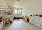 V dome sú 4 ďalšie izby – hlavná spálňa s vlastným šatníkom a výstupom na terasu, dve detské izby a hosťovská izba alebo pracovňa. V nočnej časti domu je aj priestranná kúpeľňa so sprchovým kútom, vaňou a toaletou, samostatný šatník a technická miestnosť. Samostatné WC nájdete aj na chodbe pri vstupe.