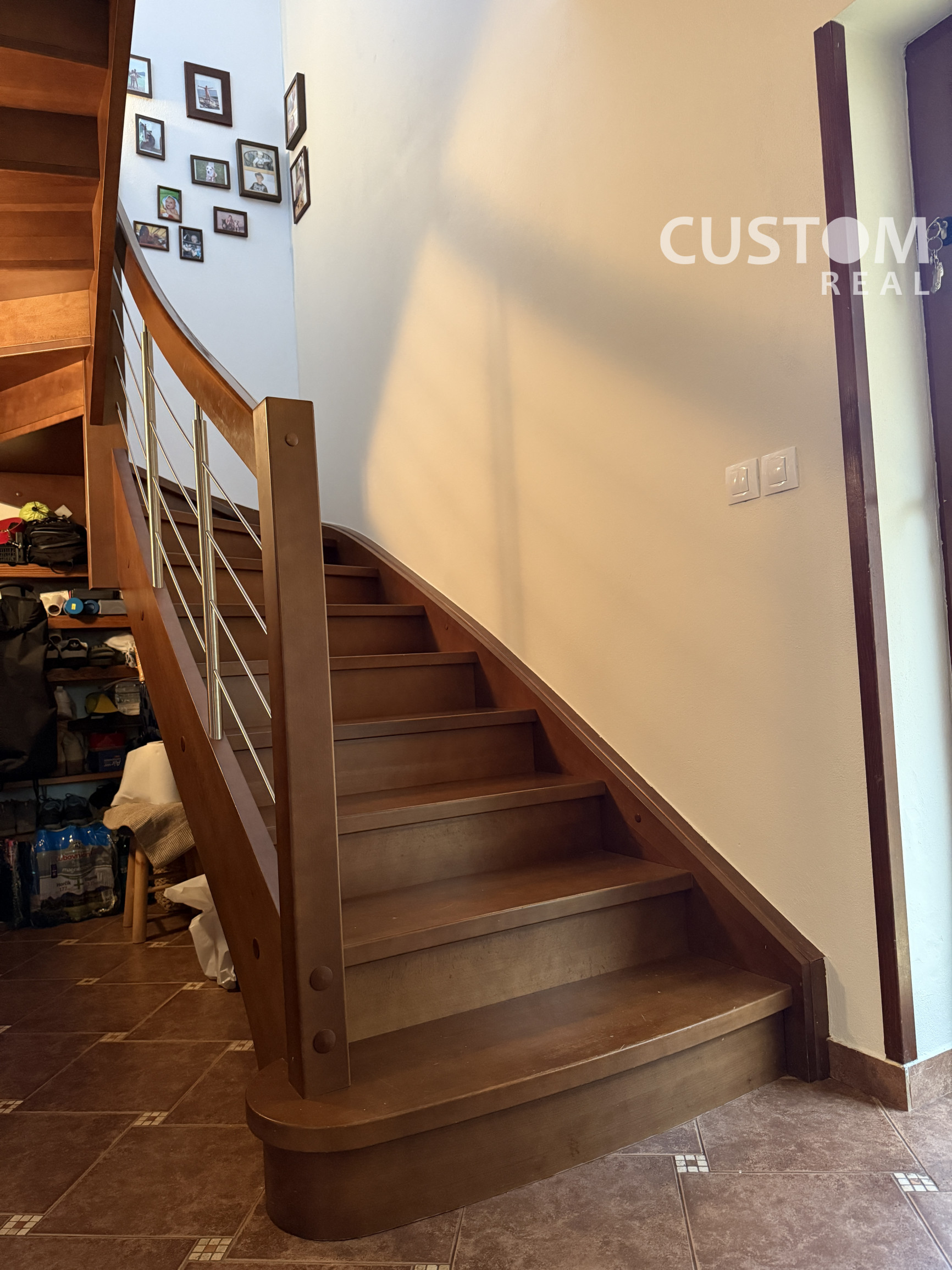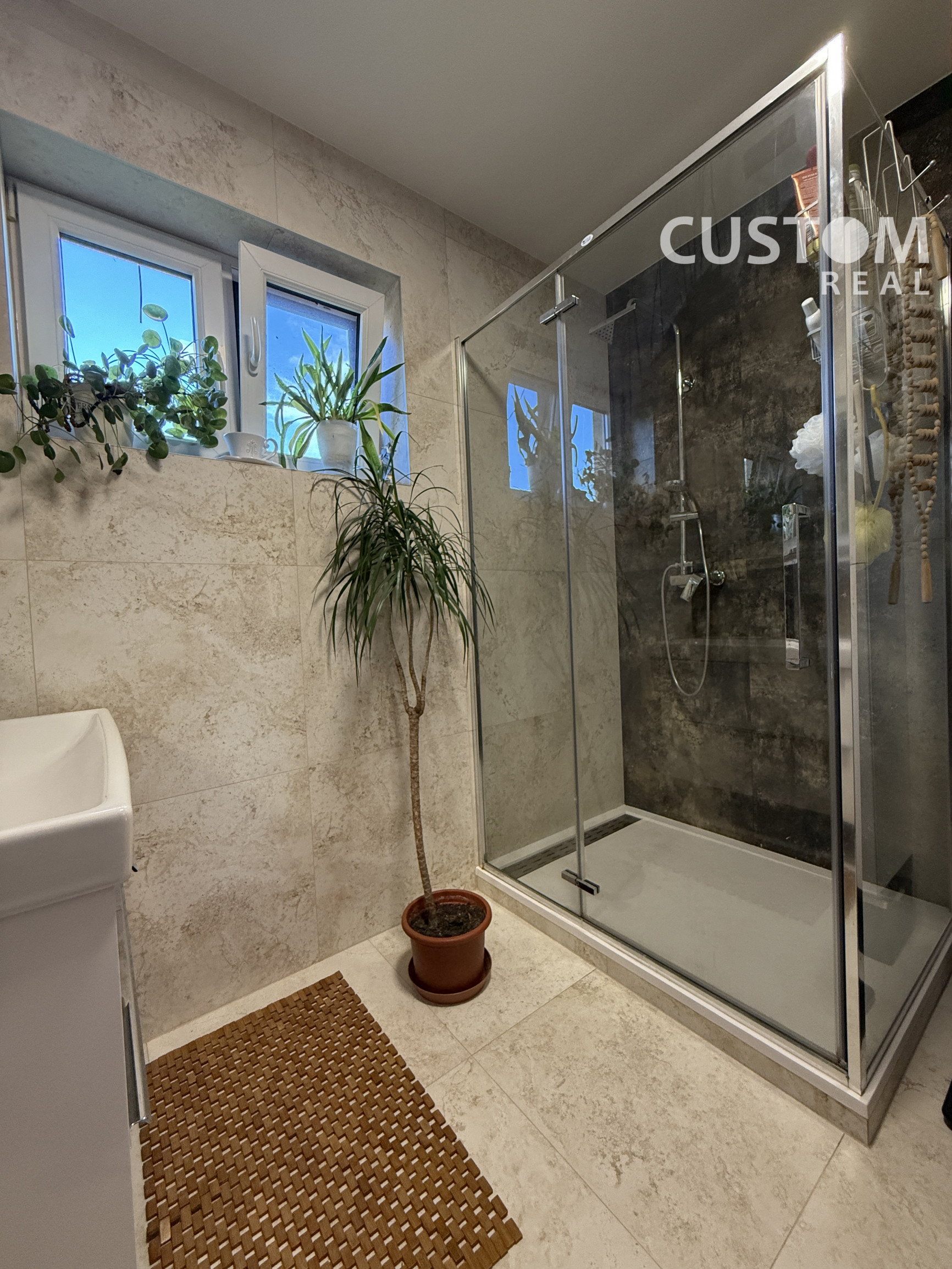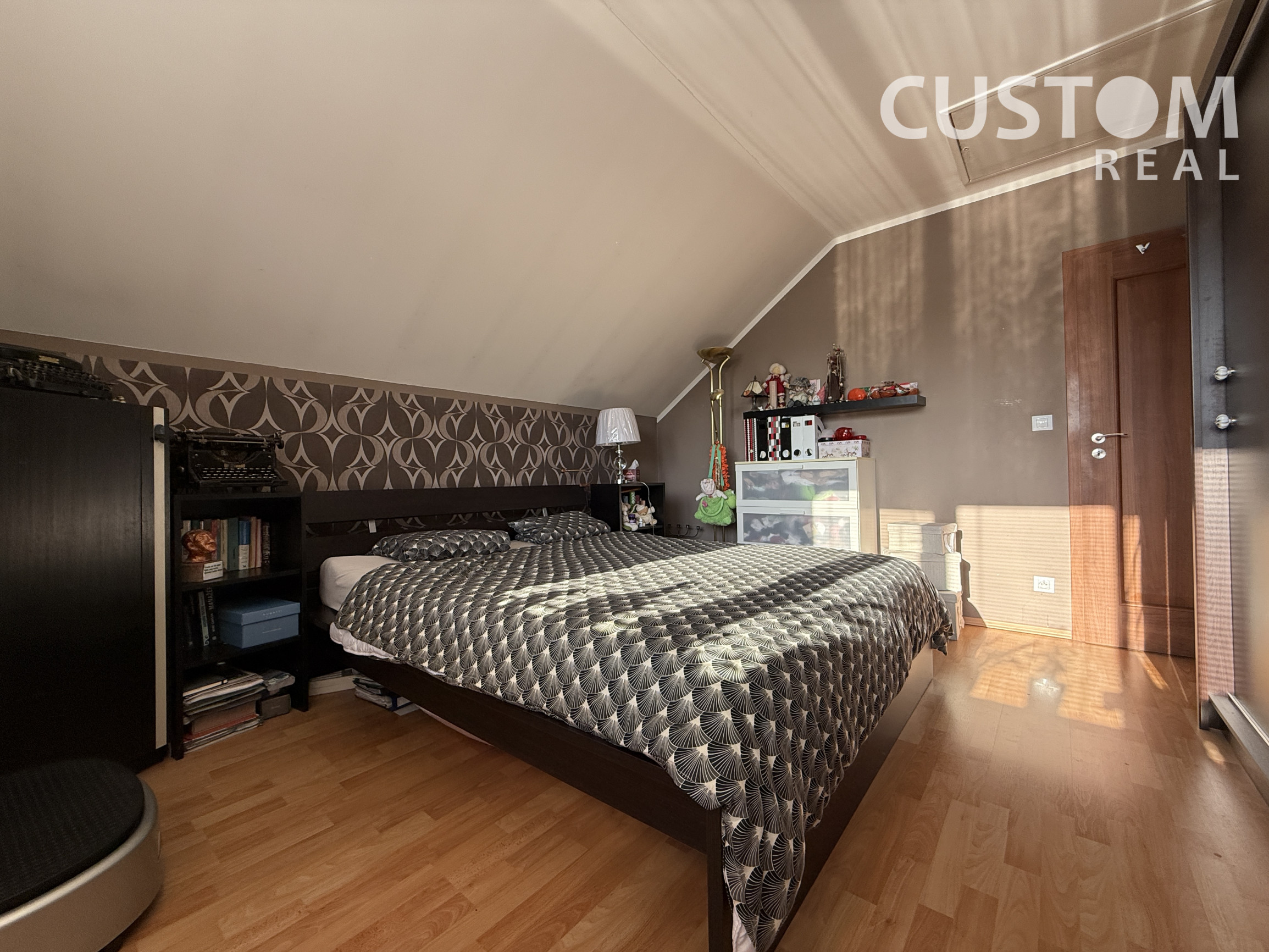 - dve kúpeľne: prízemie – rohová vaňa, dve umývadlá, WC, bidet; podkrovie – sprchovací kút, WC