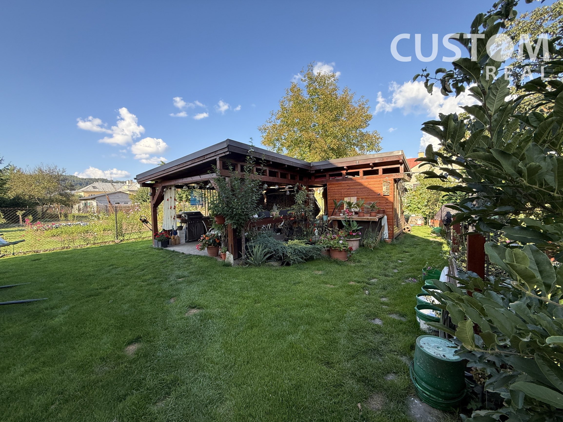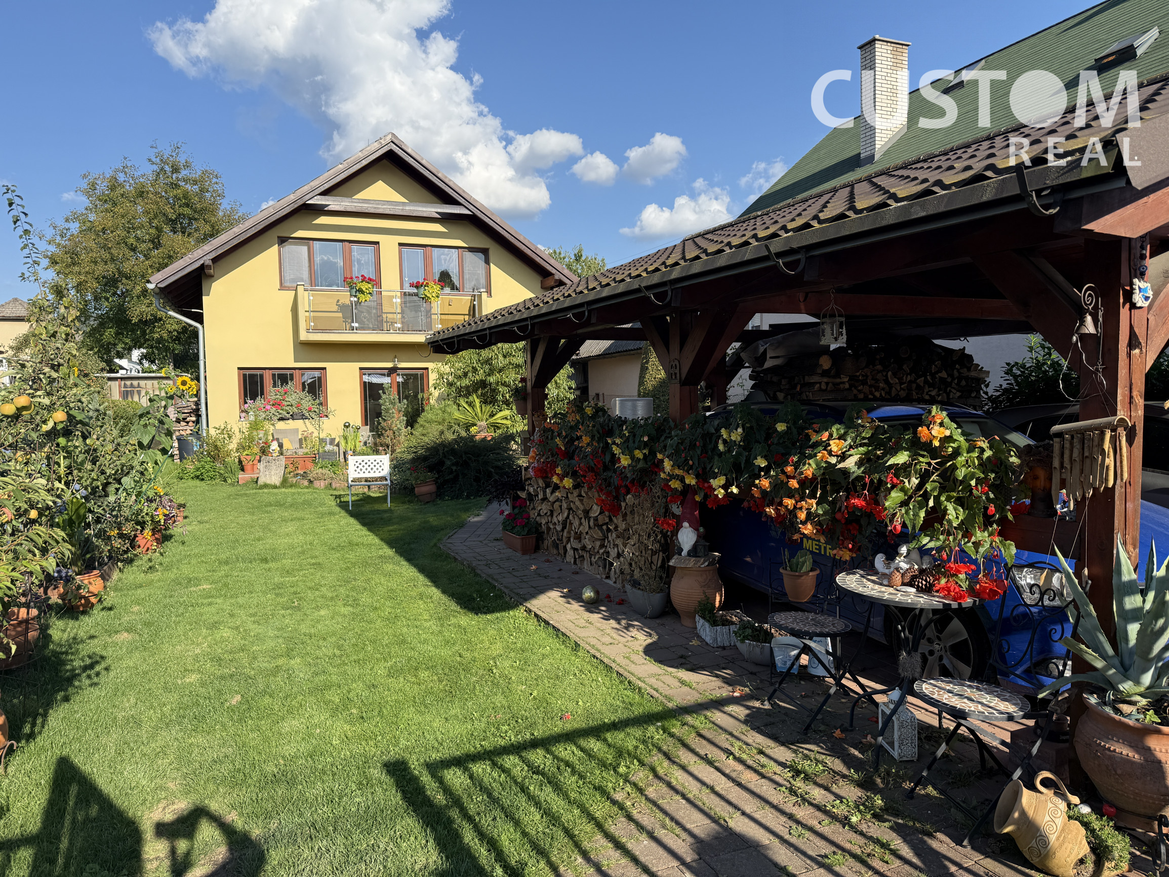 - prístrešok pre dve autá (rozmer 6 x 5 m) okrasná záhrada, ovocné stromy, množstvo zelene