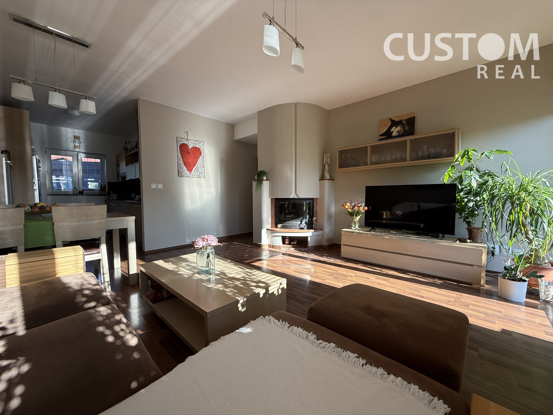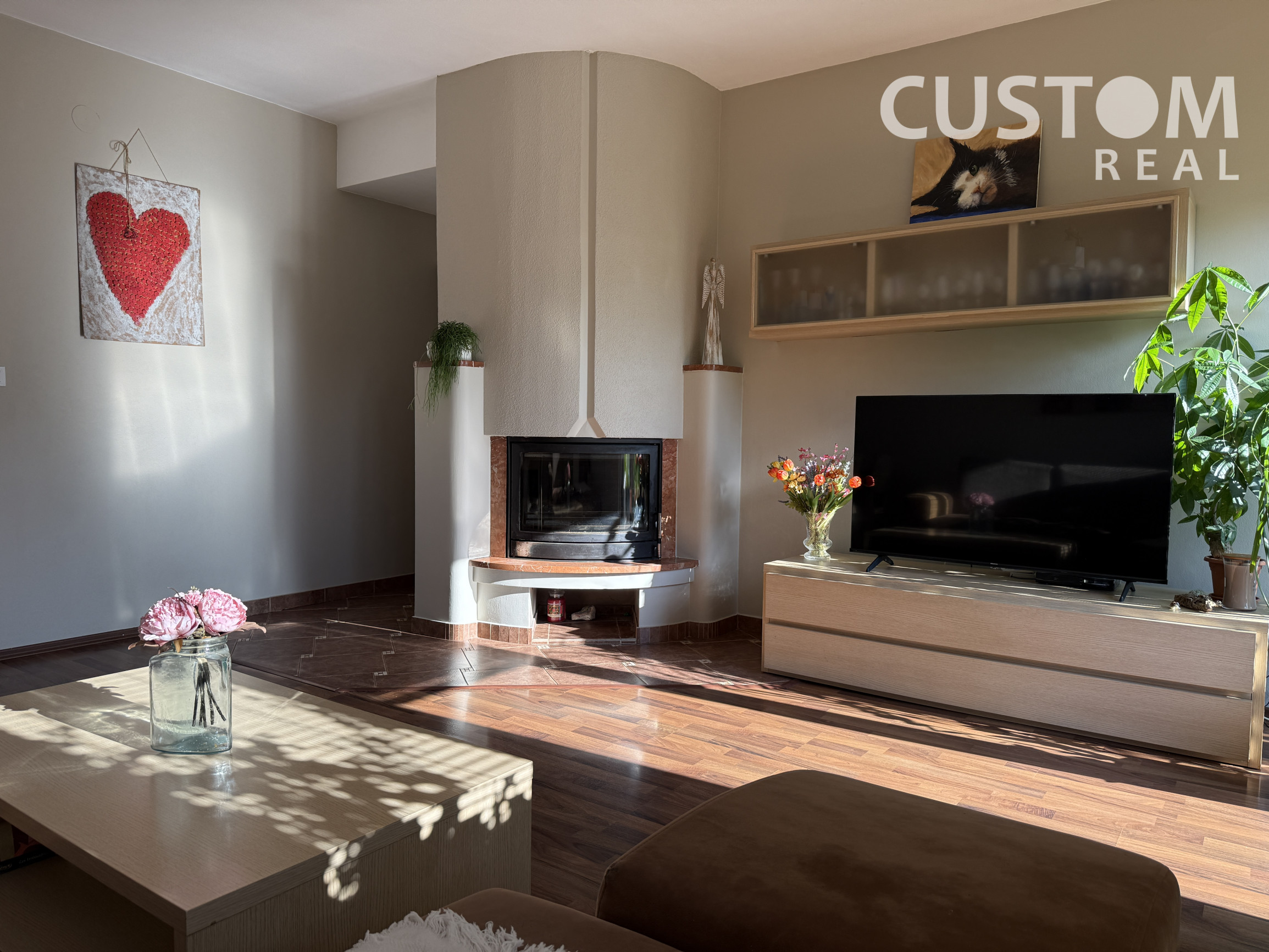 - kúrenie: plynové ústredné kúrenie, radiátory, plynový kotol, krb v obývačke