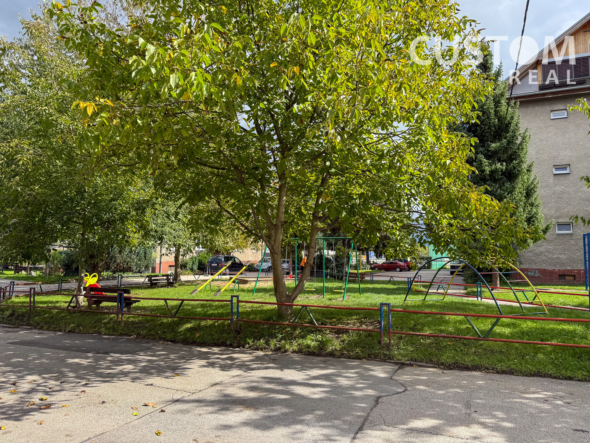 Lokalita je úplne ideálna - obklopená zeleňou, stromami a malým detským ihriskom a zároveň na skok do Lidlu, centra či na vlakovú stanicu.
