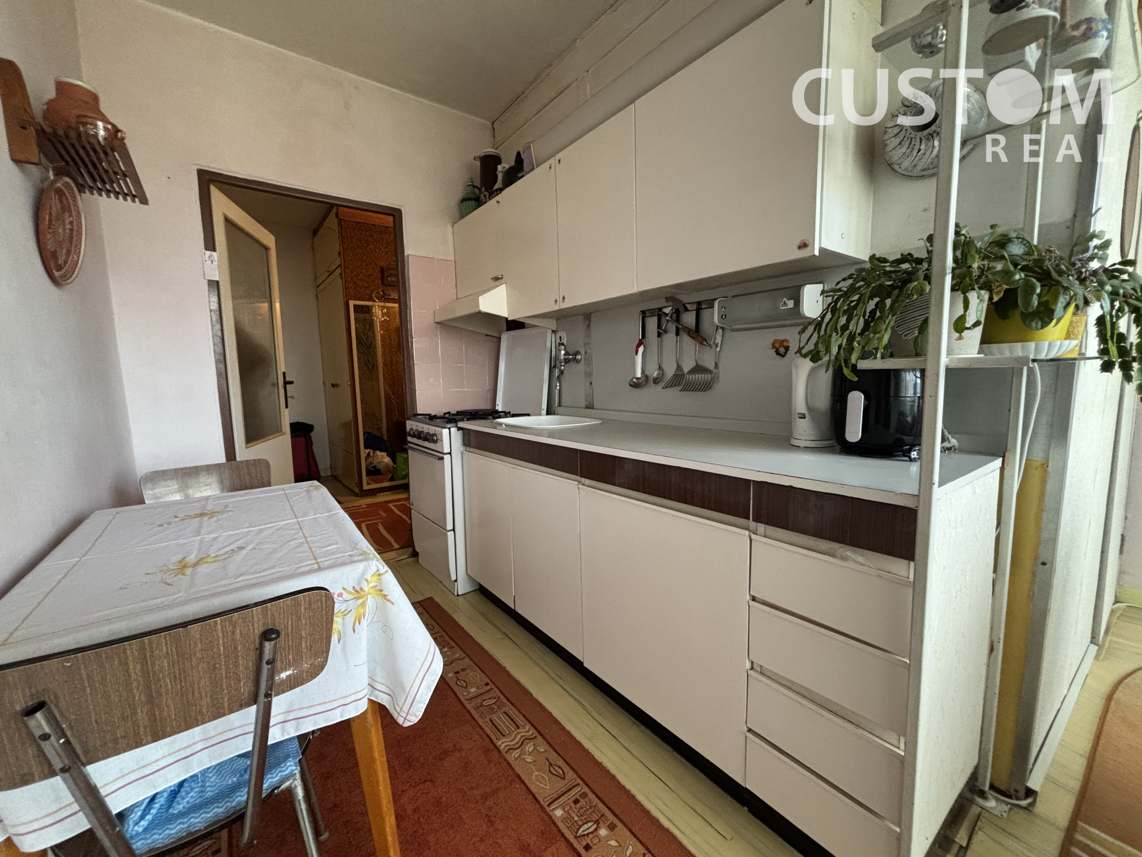 Dispozíciu tvorí priestranná vstupná chodba s dostatočným úložným priestorom, kuchyňa so špajzou a východom na balkón, 2 nepriechodné izby, lodžia, k bytu patrí murovaná pivnica.