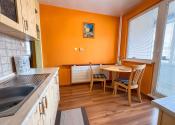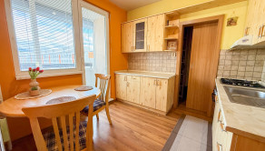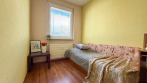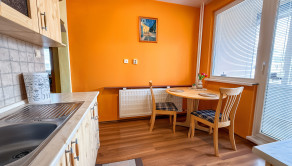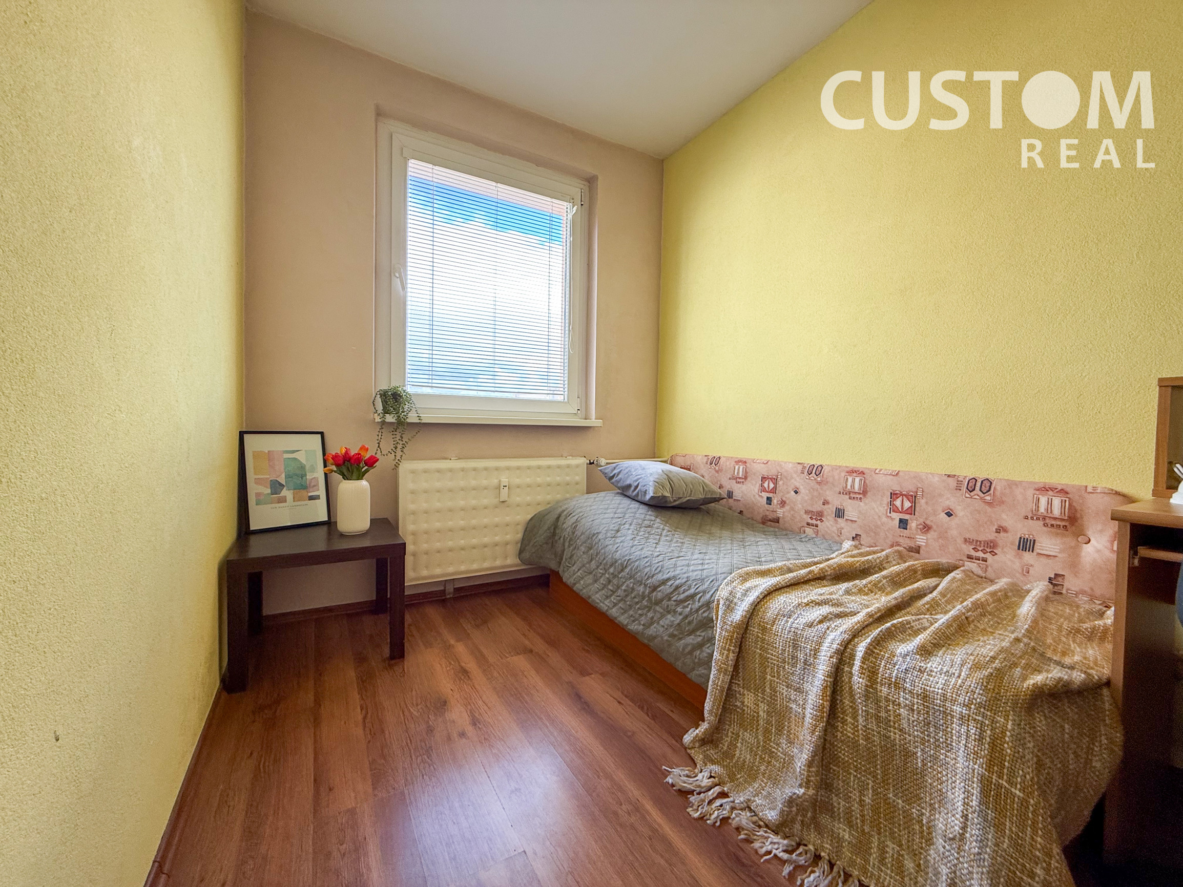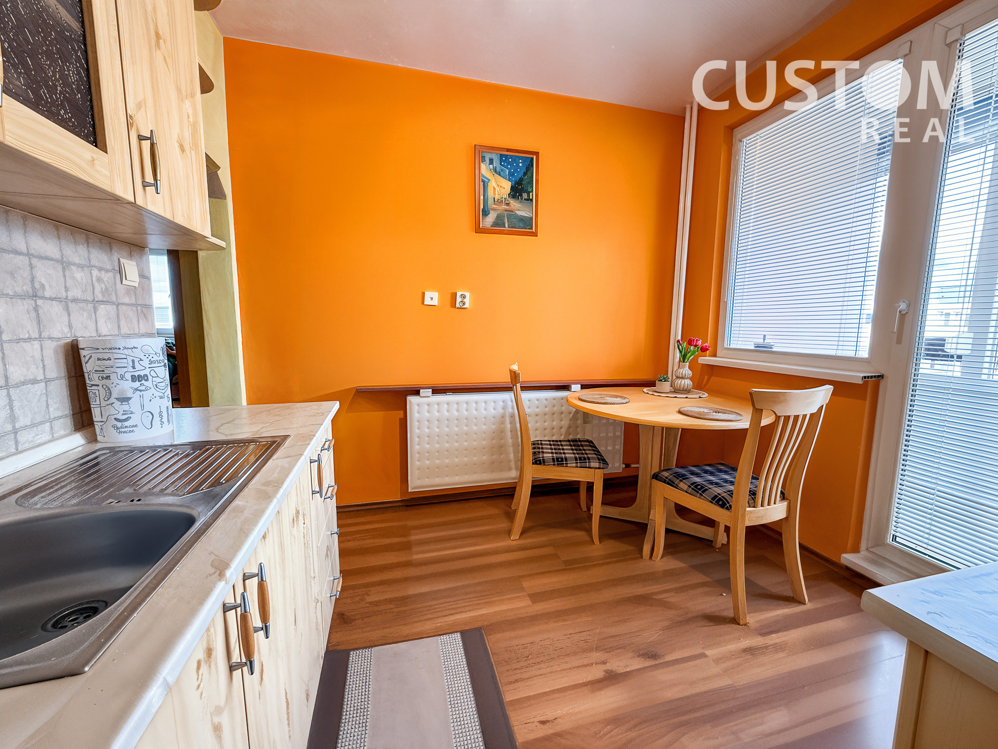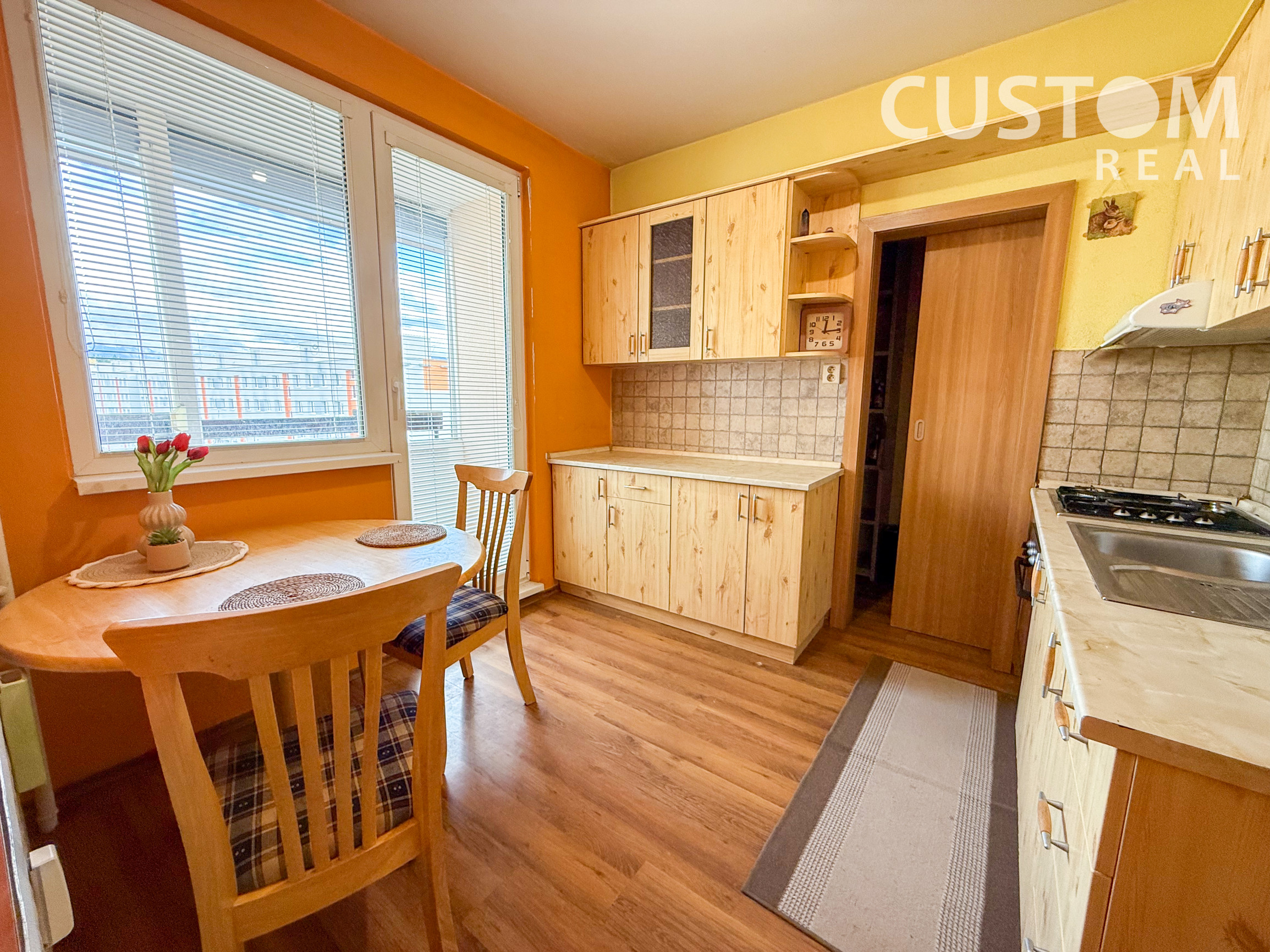 Dispozične je byt praktický – vstupná chodba so šatníkom, kúpeľňa s vaňou, samostatné WC, kuchyňa so špajzou a vstupom na loggiu, obývačka, spálňa a detská izba.