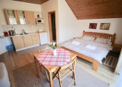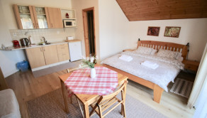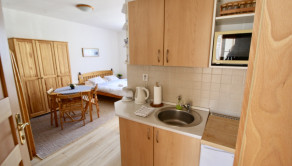 - 1 x apartmán - kompletne vybavená kuchynská linka, kúpeľňa so sprchovacím kútom a toaletou