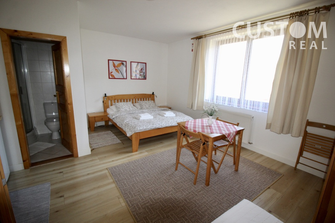 Niektoré z izieb majú balkón s posedením. Penzión disponuje centrálnym plynovým kúrením, parkovacou plochou pre 3 vozidlá v rámci pozemku (parkovanie je možné aj na ulici pred penziónom), záhradným posedením, v každej miestnosti je pripojenie na internet. Penzión je funkčný, dosahuje výbornú obsadenosť počas celého roka, bez nutnosti rekonštrukcie je možné pokračovať v jeho prevádzke. Predáva sa aj so zariadením (ako je na fotografiach). Penzión je možné využívať na podnikateľskú činnosť, ale aj na bývanie viacpočetnej rodiny, príp. kombináciu bývania a podnikania. Nakoľko je nehnuteľnosť vedená na LV ako dom, je možné financovať kúpu aj z hypotekárneho úveru.
