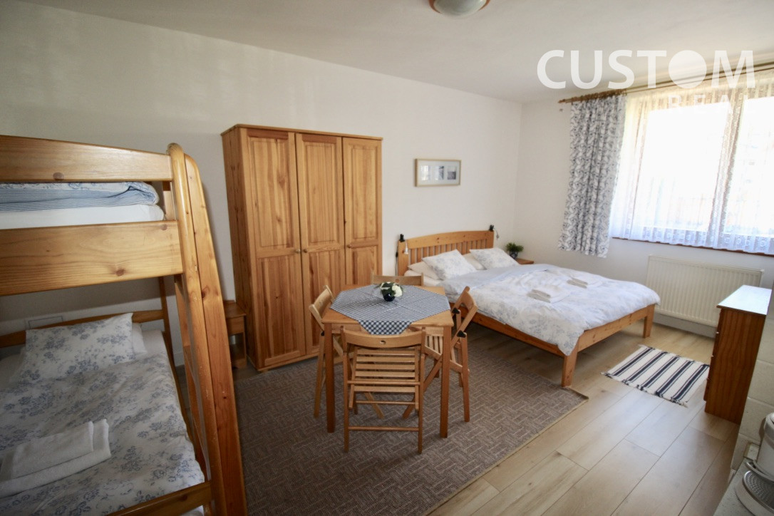 - 3 x 2-posteľové izby s prísteľkami - kuchynský kút, kúpeľňa so sprchovacím kútom a toaletou