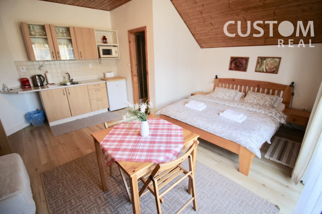 Rodinný penzión v rázovitej obci Terchová - v blízkosti známeho rekreačného strediska Vrátna s výbornými podmienkami pre turistiku, lyžovanie, bicyklovanie a takisto s množstvom kultúrnych a športových akcií. Stavba postavená v r. 2006 je 2-podlažná, postavená na pozemku o výmere 420m2.