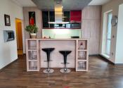 Dispozične pozostáva z otvorenej dennej časti, ktorú tvorí kompletne zariadená kuchyňa prepojená s jedálňou a obývacou izbou, ďalej z dvoch samostatných spální, kúpeľne a oddelenej toalety.