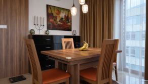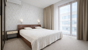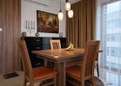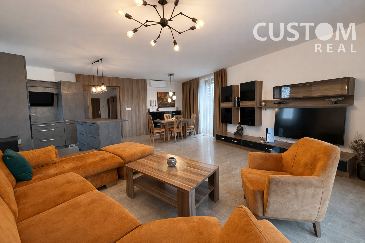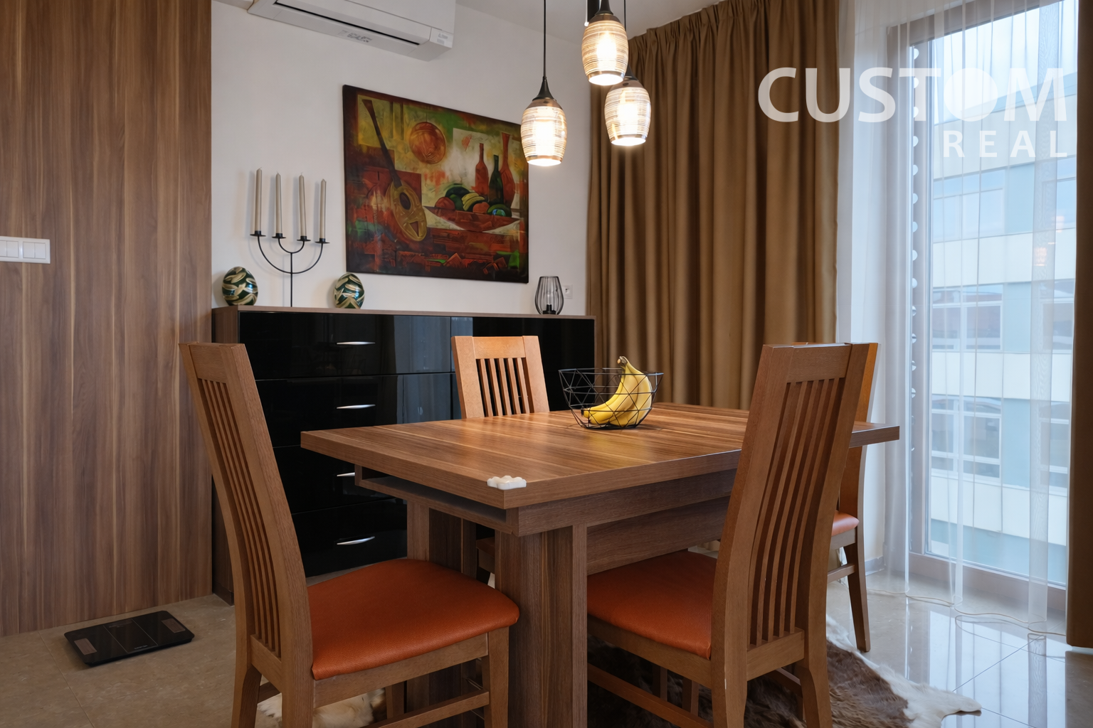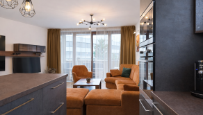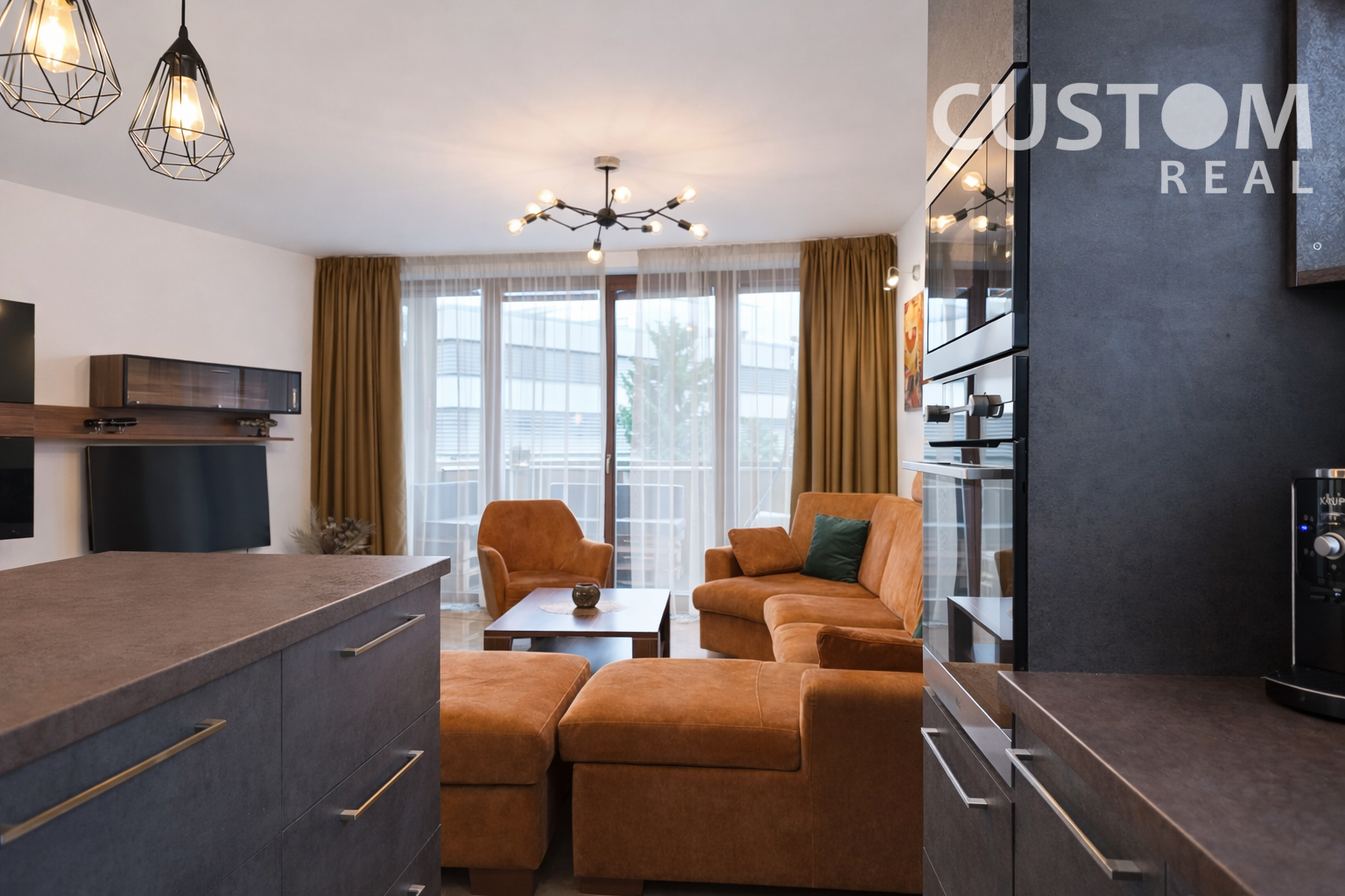 Dispozícia bytu je premyslená a funkčná. Dominantou je priestranná obývacia izba prepojená s jedálenskou časťou a kuchyňou s ostrovčekom, ktorá vytvára prirodzené centrum domova. Byt disponuje dvoma samostatnými spálňami, kúpeľňou a samostatným WC. Komfort bývania zvyšuje klimatizácia v obývacej izbe aj v spálni a podlahové kúrenie, ktoré zabezpečuje príjemnú atmosféru počas celého roka.