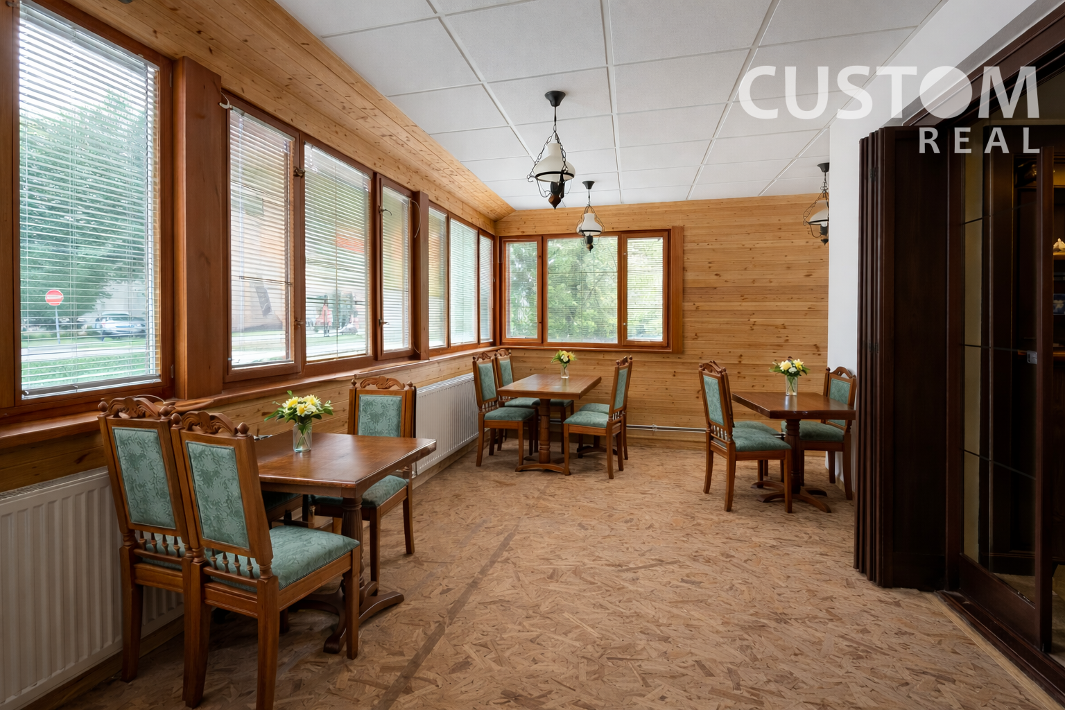 Dominantou interiéru je masívny drevený bar, štýlové obklady a detaily, ktoré vytvárajú príjemnú atmosféru s charakterom. Súčasťou priestoru je aj zimná terasa – ideálne miesto na rannú kávu, menšie stretnutia či rozšírenie kapacity prevádzky počas celého roka.