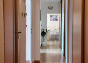 Tichý, čistý vchod a udržiavané spoločné priestory, s predzáhradkou a zeleňou v okolí bytového domu.