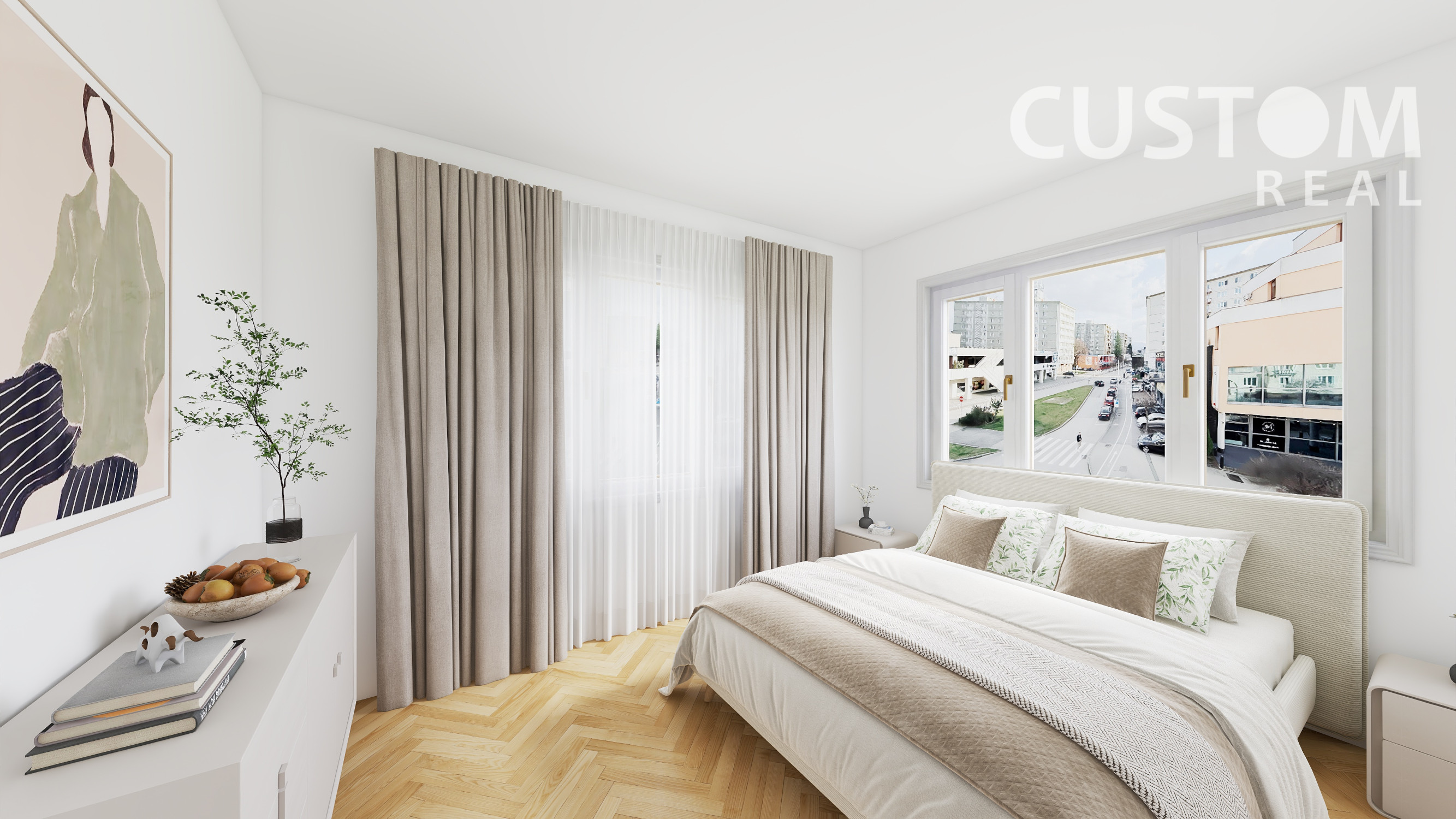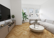 Byt disponuje veľkými oknami, ktoré zabezpečujú príjemné presvetlenie interiéru.