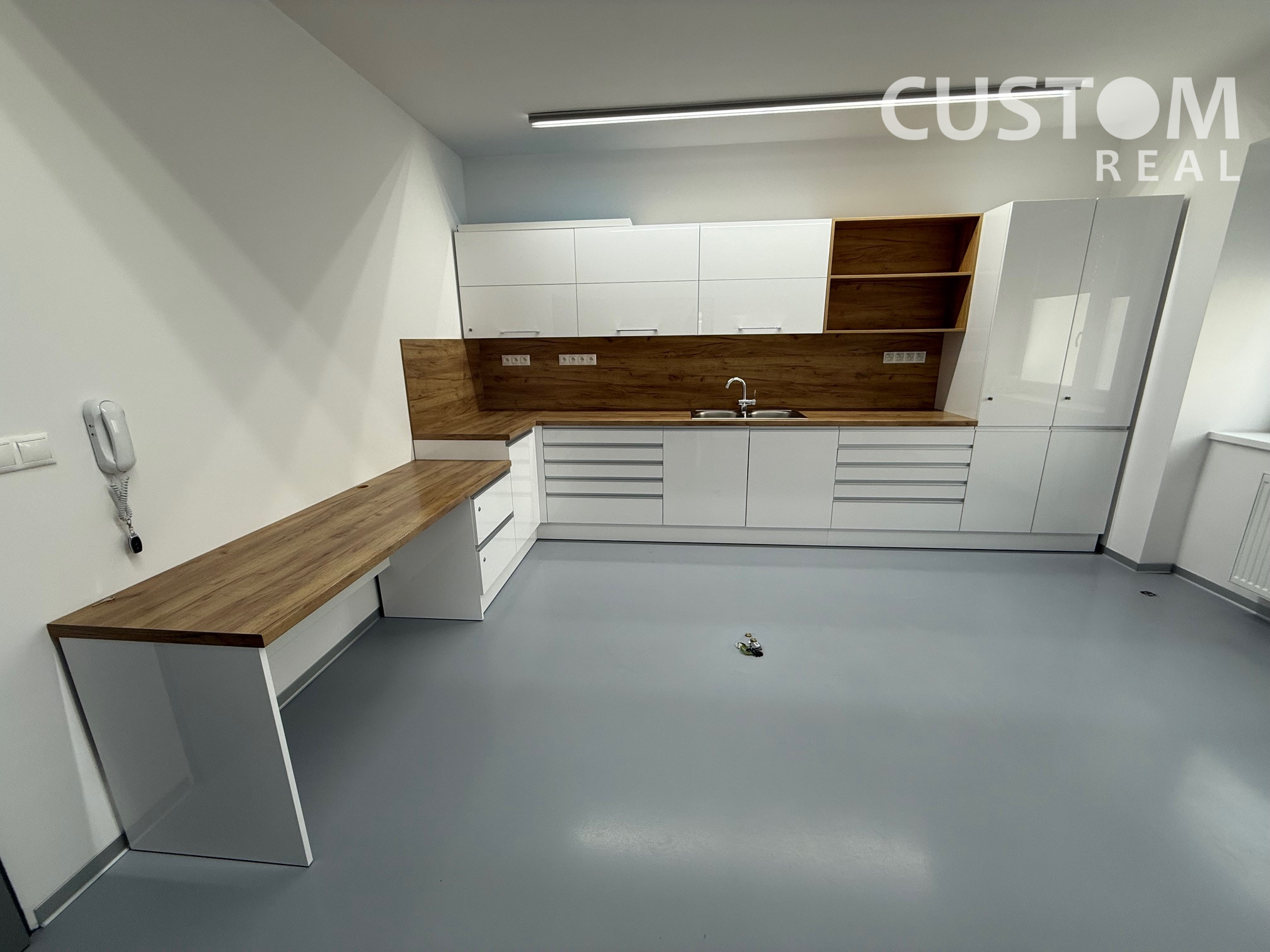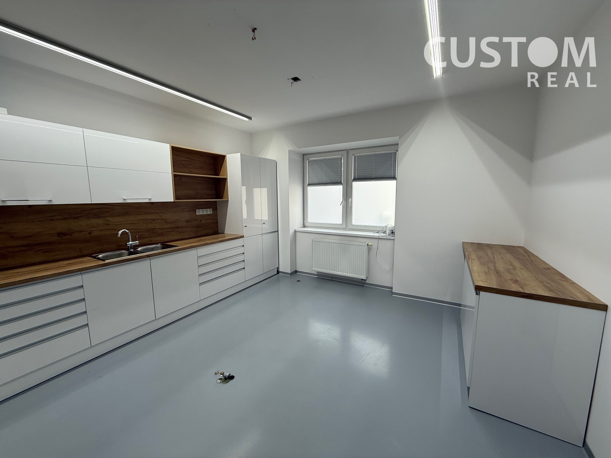 Priestor pozostáva z jednej miestnosti s kuchynkou a nachádza sa na zvýšenom prízemí, čo zabezpečuje jednoduchý prístup pre klientov.