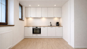 Apartmán s výmerou 52 m² (z toho 3 m² pivnica) sa nachádza na prízemí a je po kompletnej rekonštrukcii. Kúpeľňa je hotová, zvyšok priestoru je pripravený na dokončenie podľa vašich predstáv.